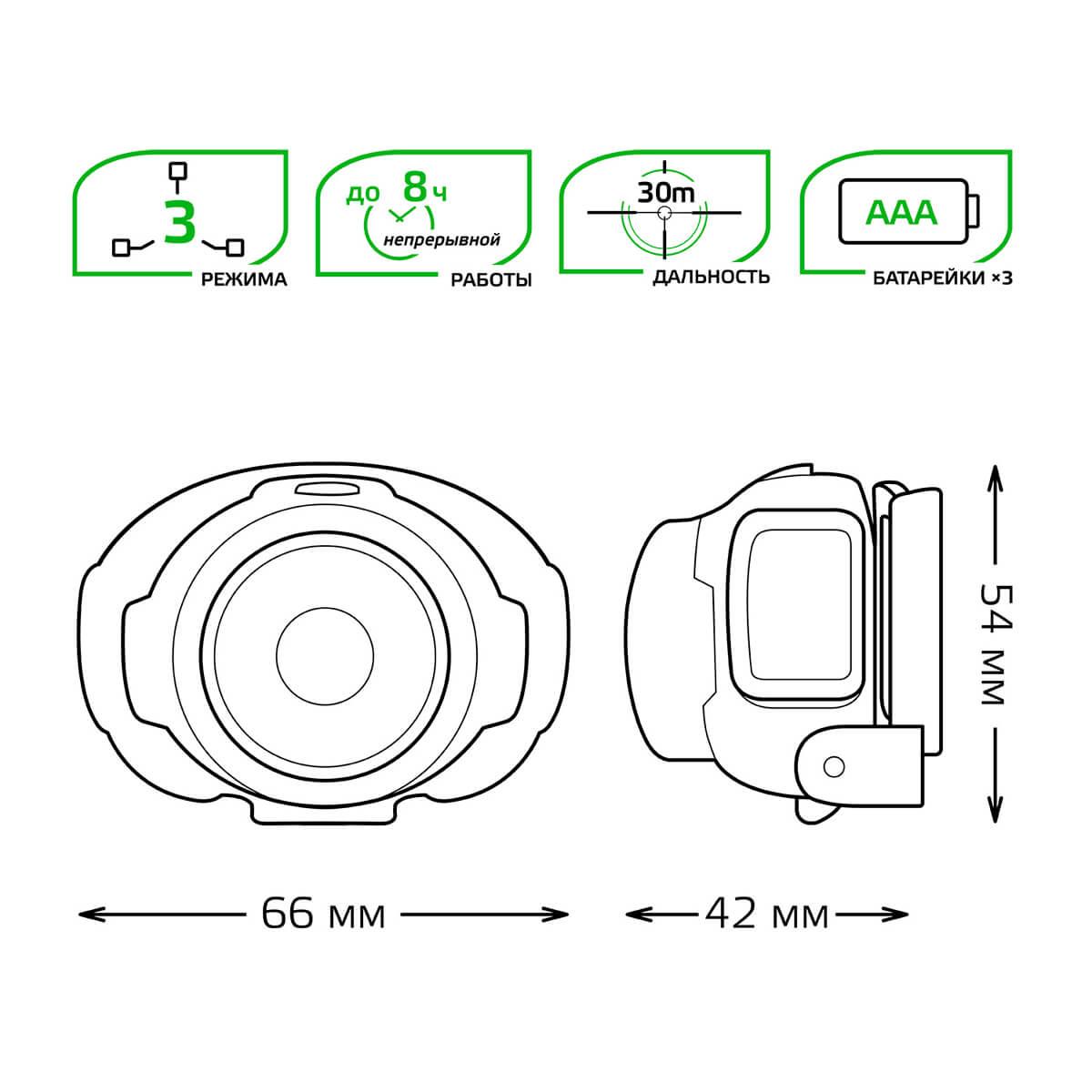 Налобный светодиодный фонарь Gauss от батареек 66х54 120 лм GF302
