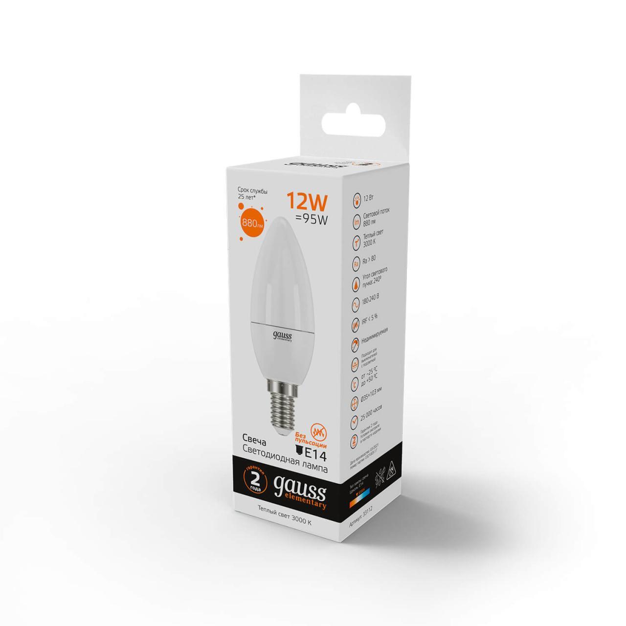 Лампа светодиодная Gauss E14 12W 3000K матовая 33112