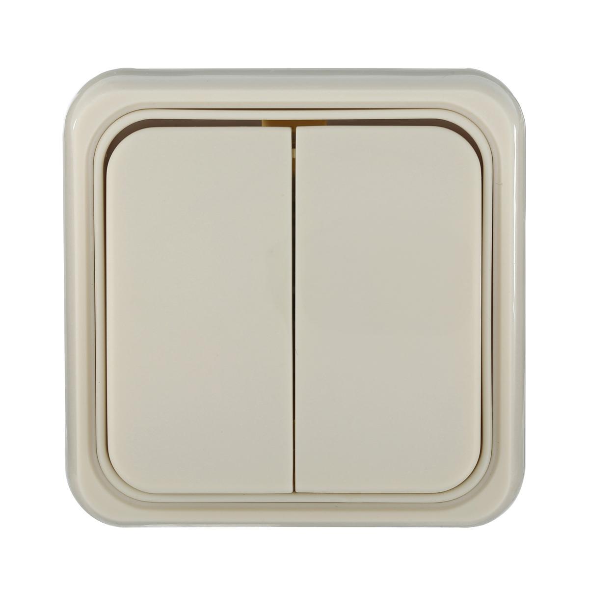 Выключатель LK Studio двухклавишный открытой установки, схема 5 (бежевый) 811101